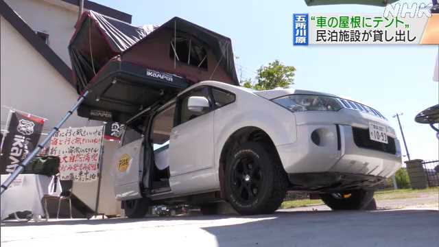 五所川原市の民泊施設が気軽にキャンプを楽しんでもらおうと、屋根の上にテントを備えた車のレンタルを行っています。