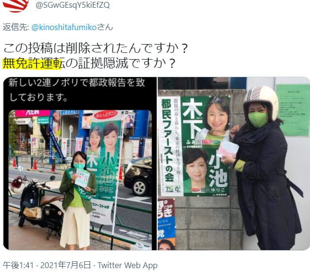 「免停期間を1日勘違いしていた」はずの無免許議員木下ふみこ氏、実は1カ月前に原チャリを運転していた 2021/7/7 バイク速報 1: 2021/07/07(水) 11:20:42.02 0 2月から7月3日まで免停のはずなのに6月1日にはすでに原付運転してるような… https://ameblo.jp/sapporo-mmm/entry-12684891022.html 続きを読む Source: バイク速報