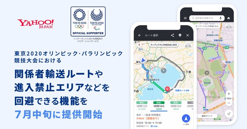 「Yahoo!カーナビ」は、東京2020大会終了後も、外部企業・団体の情報を活用し特定のエリアやルートを回避するナビゲーション技術を、今後発生しうる災害時など社会課題の解決に向けて活用していく予定。
