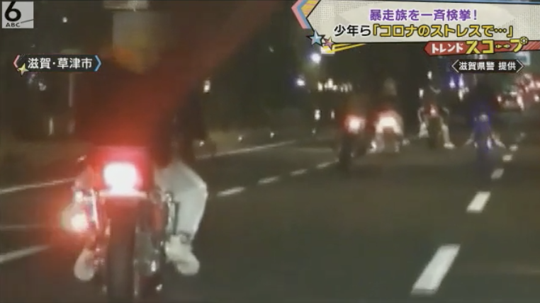 3月4日午後10時半ごろ、大津市や草津市の道路で、バイク8台で信号無視などをして、他の車の運転を妨害したとして、高校生を含む18歳と19歳の少年8人が逮捕されました。