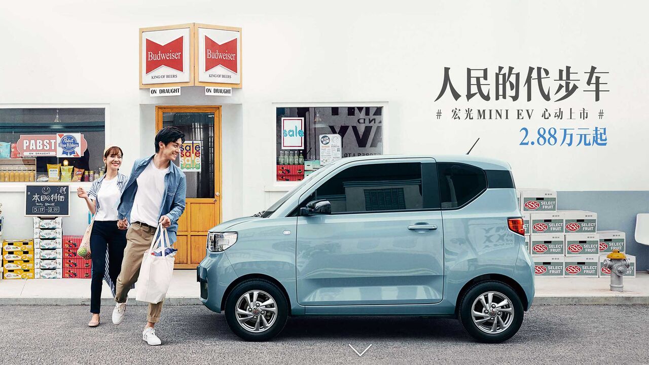 中国・上汽通用五菱汽車(ウーリン)が2020年7月に発売した最低価格2万8800元(約49万円)の格安電気自動車(EV)「宏光(ホングアン)MINI EV」――。中国の地方部を中心に人気を呼んでいる。”