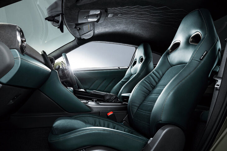 両モデルのボディーカラーには、新色の「ミッドナイトパープル」と「ミレニアムジェイド」を設定。ミッドナイトパープルは、R33型「スカイラインGT-R」以降の歴代GT-Rに採用されてきた色の進化版で、ミレニアムジェイドは、グリーンの色調で静かななかにも存在感のある「洗練された佇(たたず)まい」を表現。金属的なグレイッシュメタリックに仕上げることで、GT-Rの存在感を引き出したと紹介されている。