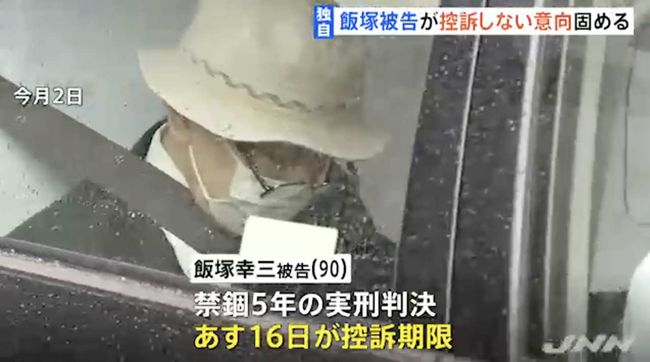 飯塚被告は今月2日、東京地裁で禁錮5年の実刑判決を受け、あす16日が控訴期限となっていますが、関係者への取材で、飯塚被告が「控訴しない意向」を固めたことが分かりました。この意向は弁護人にも伝わっているということで、検察側が控訴しなければ禁錮5年の実刑が確定する見通しとなります。