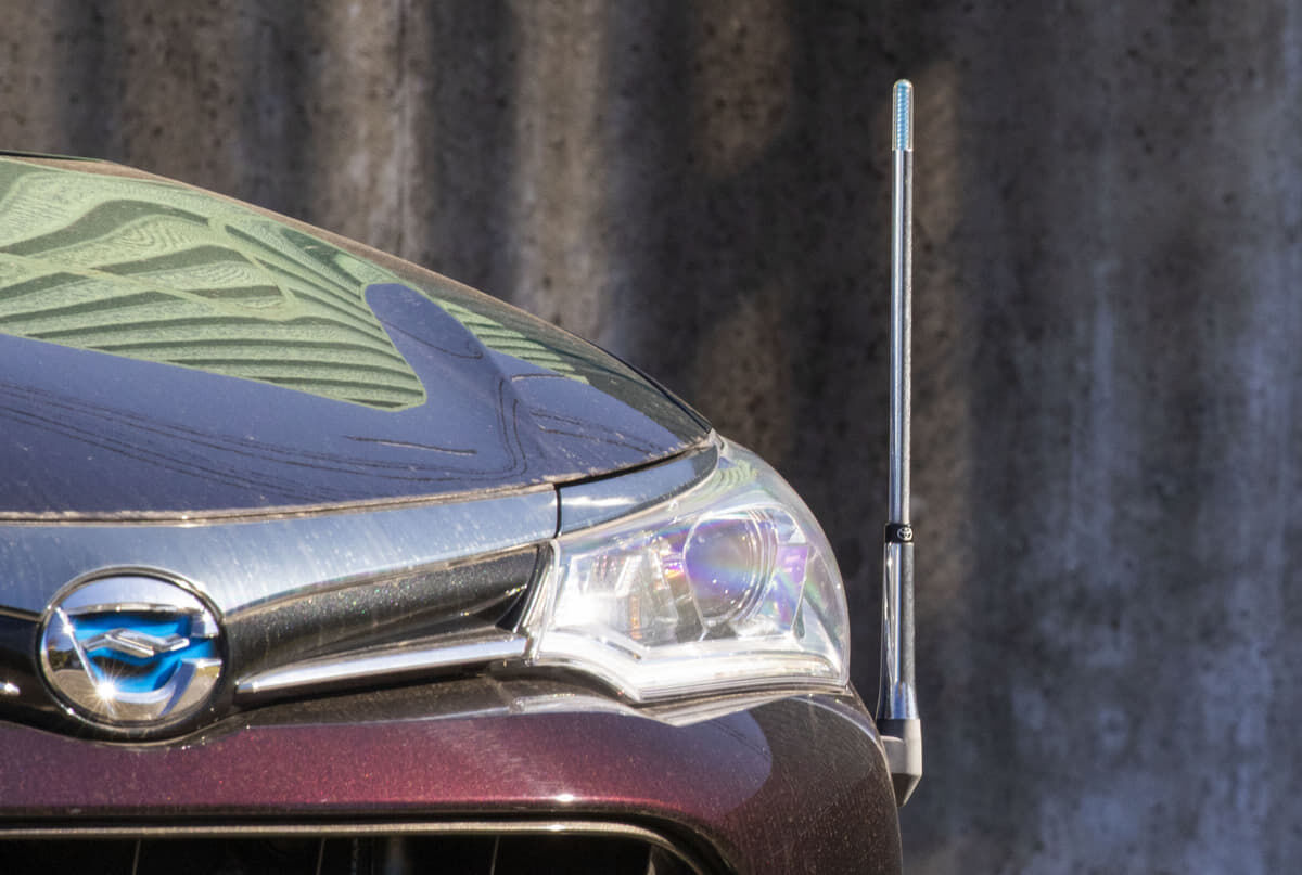 車内から必要なときだけ電動で伸縮させるタイプや、夜間でも見えやすいよう先端が光るタイプもあった。
