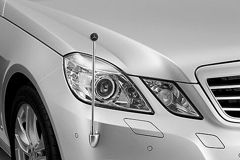 ひと昔前はボンネットが長いセダンを中心に、よく見かけた「コーナーポール」と呼ばれる棒。助手席側のフロントバンパー角に装着され、運転席からの距離感を把握しやすくするアイテムだ。