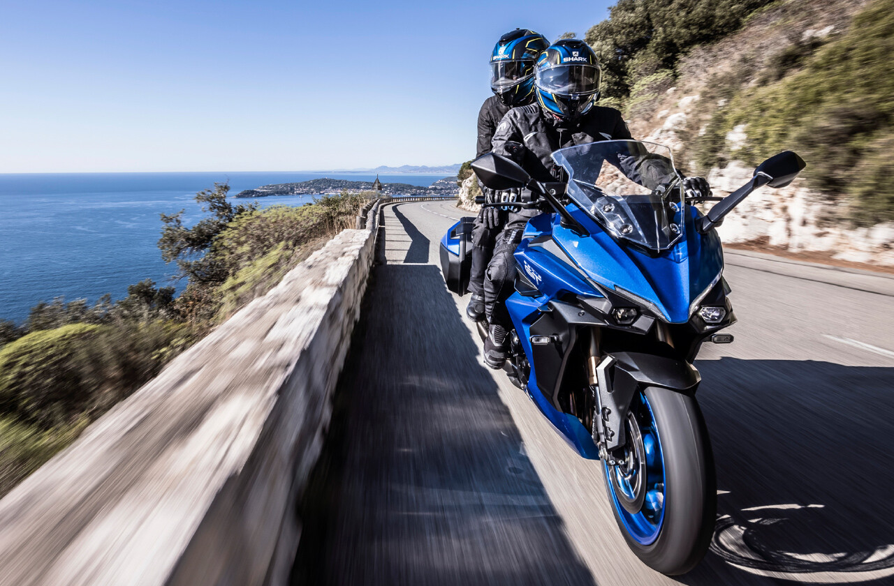 新型「GSX-S1000GT」は、スーパースポーツバイクのDNAを受け継ぎ、ツーリング性能を高めたスポーツツアラー。電子制御システムS.I.R.S.やスズキ初となるスマートフォン連携機能付の大画面フルカラーTFT液晶メーター等を採用し、日常での扱いやすさと長距離のツーリングにおける快適性や高速安定性を追求した。スタイリングは、ツアラーらしい堂々とした佇まいのなかにも、軽快なスポーツ性能を感じられる、シャープでのびやかなラインを使ったデザインとした。