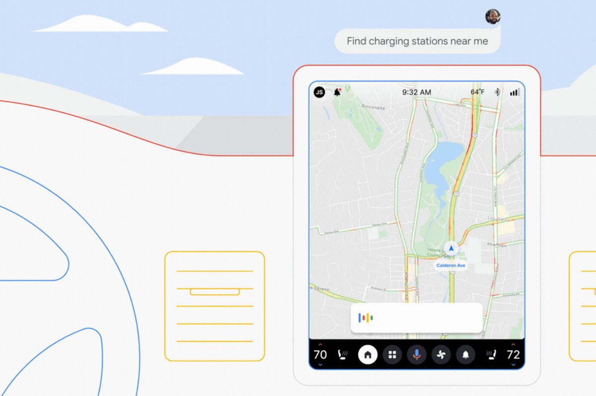 カーナビにGoogleマップを表示し、パーソナライズされたマップを使える他、Googleアシスタントに話しかけることで、ナビや到着予定時刻などを確認したり、エアコン操作やメッセージ送信が可能だ。