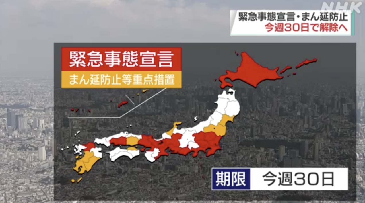 新型コロナウイルス対策で、東京や大阪など19の都道府県に出されている緊急事態宣言と8つの県に適用されているまん延防止等重点措置は、いずれも30日が期限となっています。