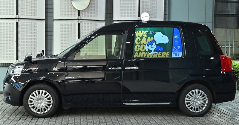 100台のスヌーピーコラボタクシーが9月26日まで の期間限定で東京都内を走行している。