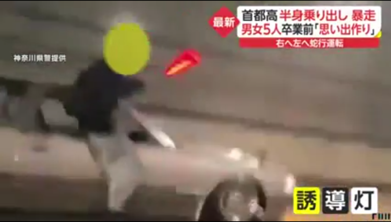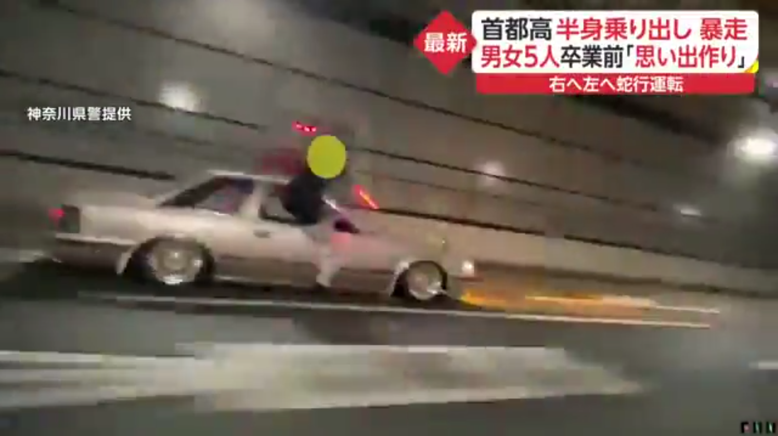 首都高 半身乗り出し暴走 右へ左へ蛇行運転 男女5人 卒業前「思い出作り」
