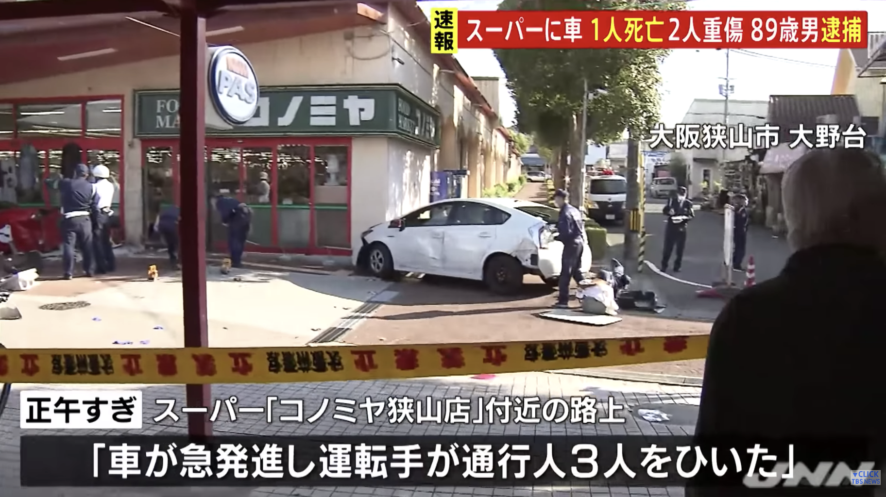 大阪狭山市でスーパー近くの路上で車が急発進し、通行人のうち男性1人が死亡、2人が重傷です。警察は車を運転していた89歳の男を現行犯逮捕しました。