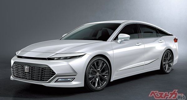 シリーズ初のFF化だ。走りのよさとキャビンの広さを両立させたGA-Kプラットフォームへと移行させ、コストダウンを図る。現行型クラウンも、レクサスLSなどと同じ大型FR用GA-Lプラットフォームを使用しているが、実は車幅を1800mmとしたクラウン専用仕様。これだけでもコストがかかっており、さらに車幅の制約はデザインの制約にも繋がる。そこでプラットフォームの共有化と全幅を抑えるため、次期型のFF化は開発上の必須項目となったようだ。