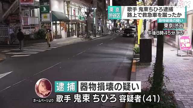歌手の鬼束ちひろ容疑者が東京・渋谷区の路上で救急車を蹴ったなどとして器物損壊の疑いで逮捕されました。