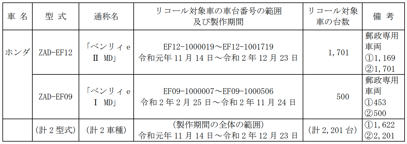 五羊-本田摩托(広州)有限公司は「ベンリィe I MD」「ベンリィe Ⅱ MD」に方向指示器が作動しなくなるおそれのある問題で国土交通省にリコールを届け出た。