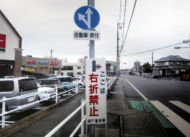 交通規制課によると、現場は瀬戸市水南町の県道と市道が交わる交差点。道路の形状などから規制があると思い込んだ瀬戸署員が、右折禁止の標識設置を申請し、交通部が十分に調査せず許可した。8月25日に標識が設置され、別の署員が誤りに気付いて11月9日に標識を撤去するまで、この交差点を右折した168件の「違反」を検挙したという。