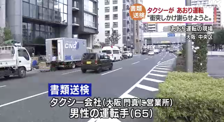 大阪・中央区でタクシーが原付きバイクにあおり運転をしたとして運転手が書類送検されました。