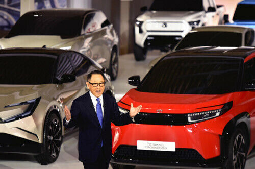 来年半ばに発売する新たなEVシリーズ第1弾のスポーツ用多目的車(SUV)「bZ4X」を手始めに、小型から大型SUV、セダンまで幅広いタイプをそろえる。