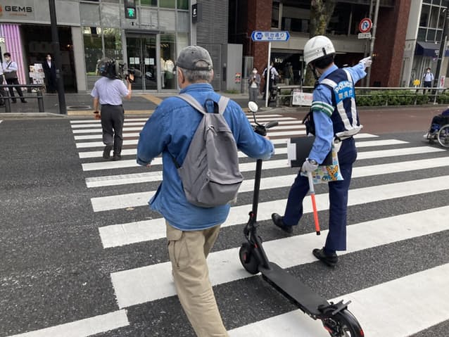 電動キックボードへの安全指導が行われた(9月、東京都渋谷区)