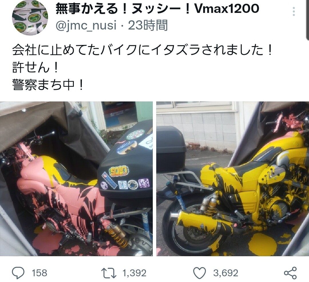 【悲報】YAMAHAのリッターバイク、社内敷地でペンキまみれにされてしまう