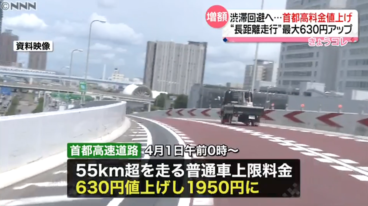 この状況を回避するため、4月1日午前0時から、55キロを超える長距離を走行する普通車の上限料金を630円値上げし、1950円にするということです。