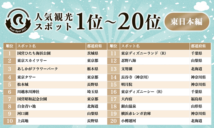 おでかけ需要が戻りつつある昨今、どこかいいスポットはないかな? 来年こそはおでかけしたい! と探している人も多いですよね。コロナ禍で人気の観光スポットに変化はあったのでしょうか? 気になりますよね。