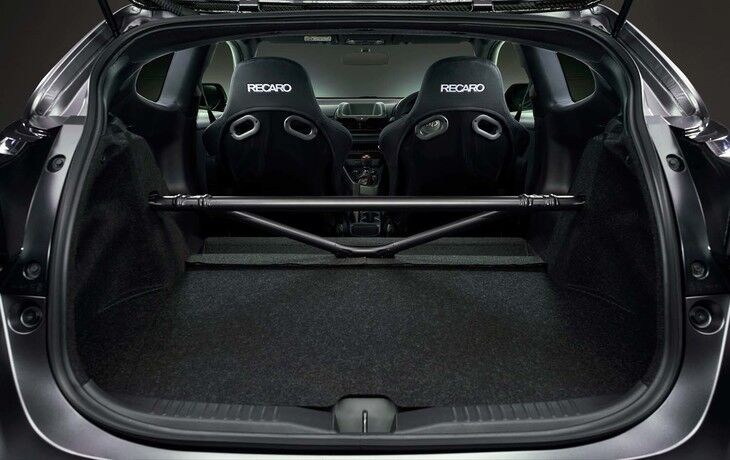 一方で、軽量高剛性なカーボン(綾織CFRP)製のエンジンフードやルーフ、リアスポイラーなどを装備。リアシートを撤去し乗車定員を2人とすることで、GRヤリスRZ“ハイパフォーマンス”に対して約20kgの軽量化を実現した。また車体については、スポット溶接打点数を545点増加し、構造用接着材の塗布範囲を12m延長することで剛性を強化。ドライバーの操作によりダイレクトに応えることができるようになったという。