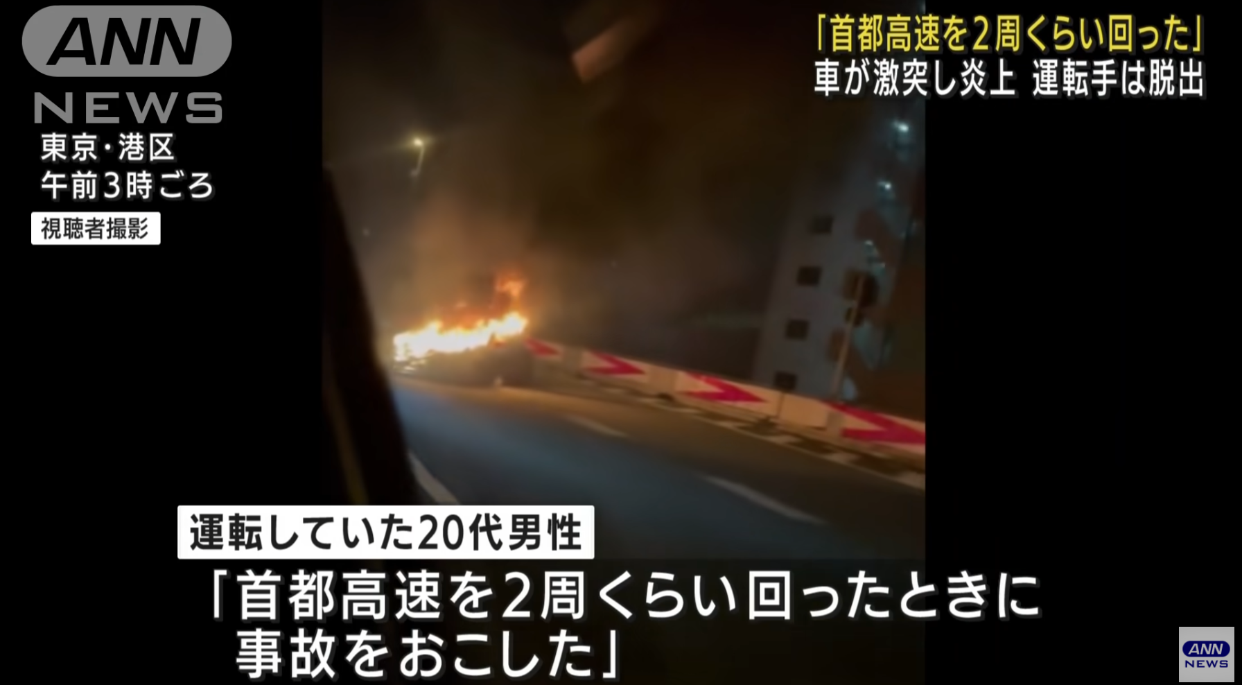 「2周位回って」首都高で側壁に激突スピンして炎上