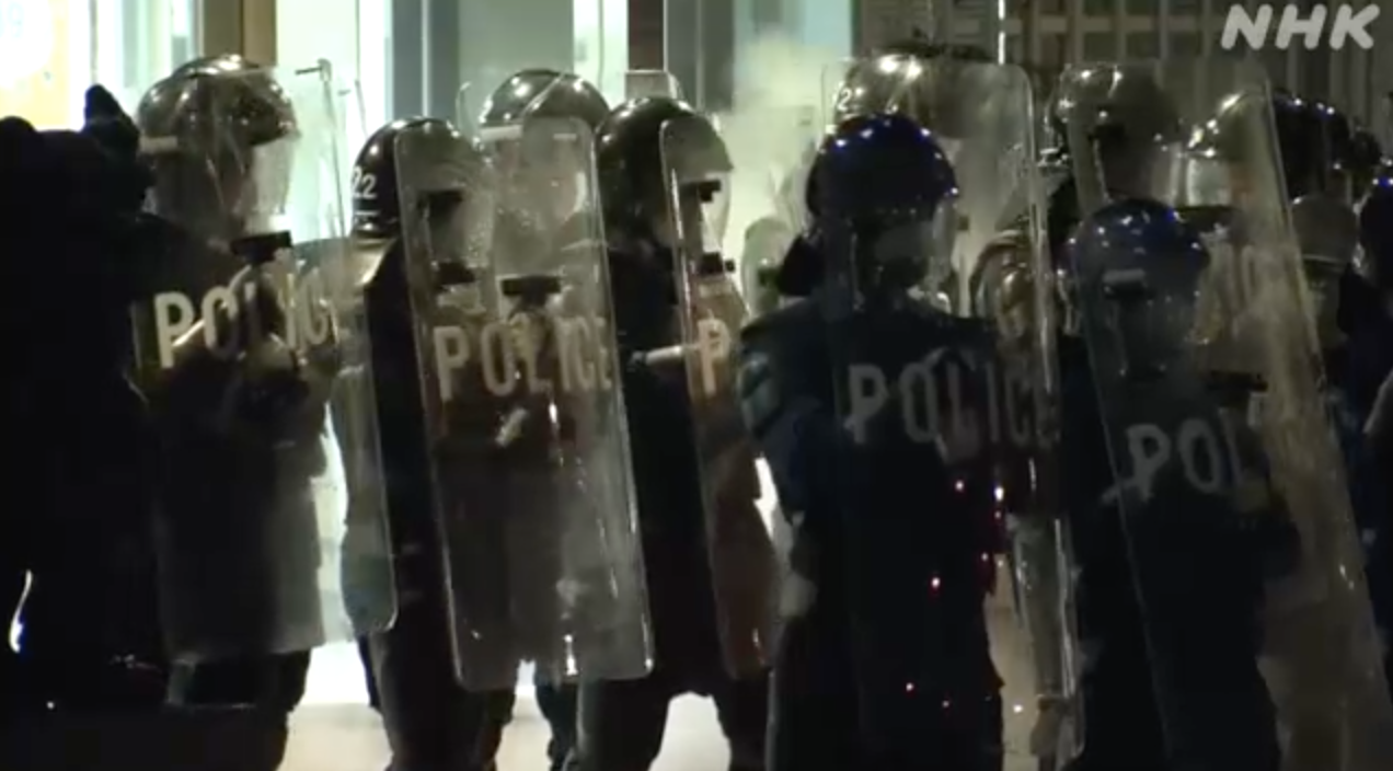 警察は機動隊を出して警戒にあたるとともに、署の敷地内に入ってきた一部の若者に立ち去るよう警告し、28日午前4時半ごろには若者たちの姿は見えなくなりました。この騒動でけが人はいませんでした。