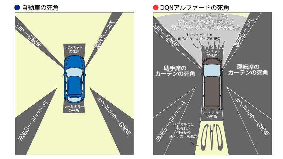 よくわかる普通の自動車の死角とDQNアルファードの死角のちがい pic.twitter.com/VfJNTIBXRl