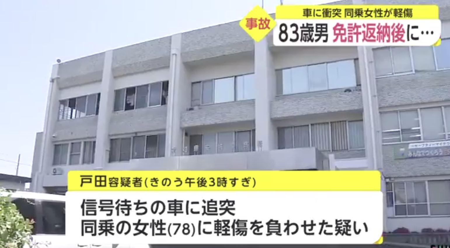 運転免許を自主返納した83歳の男が、軽乗用車を運転して事故を起こしたとして、逮捕された。