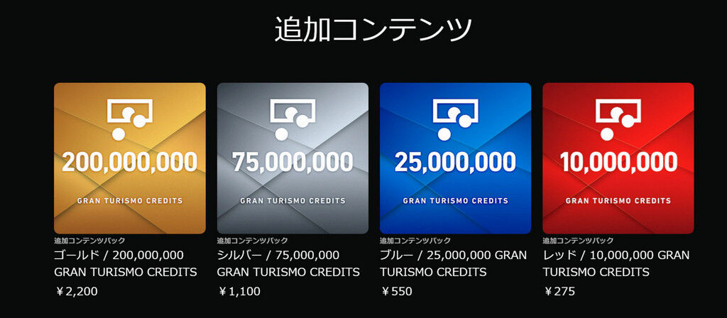 グランツーリスモ7のマイクロトランザクション「ゲーム内クレジットの購入」の価格が