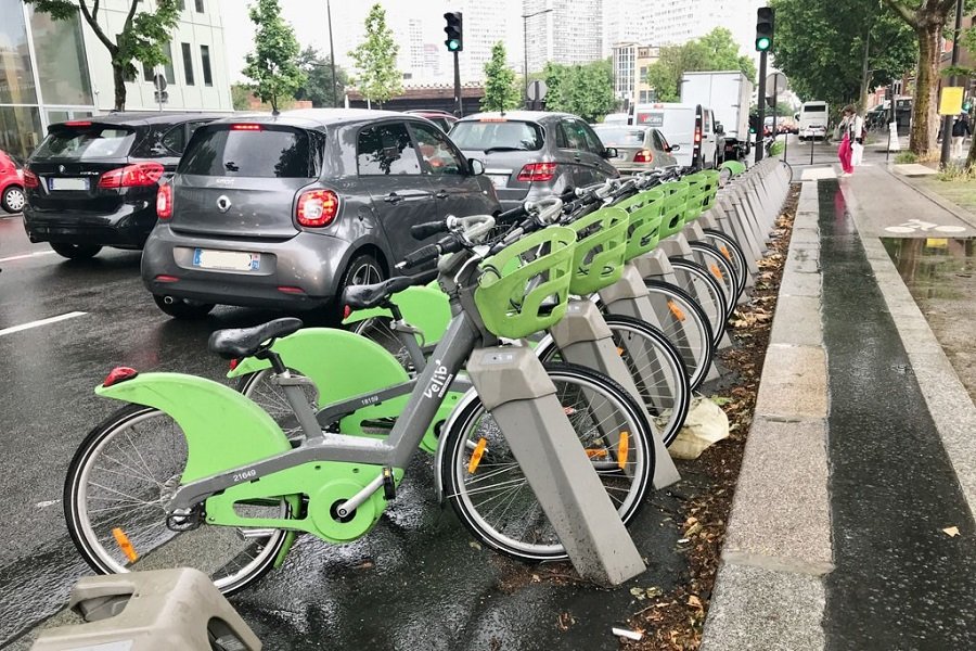 まずはパリの自転車政策から見ていこう。パリは、電動キックボードが導入される前から、自転車で移動しやすい道路空間の整備に力を入れてきた。パリ市は市街地に自転車道や駐輪場を整備して、レンタサイクル「Velib’(ヴェリブ)」を導入。パリ交通公団(RATP)はMaaSアプリ「Bonjour(ボンジュール)RATP」を使って公共交通と自転車を連携させた。