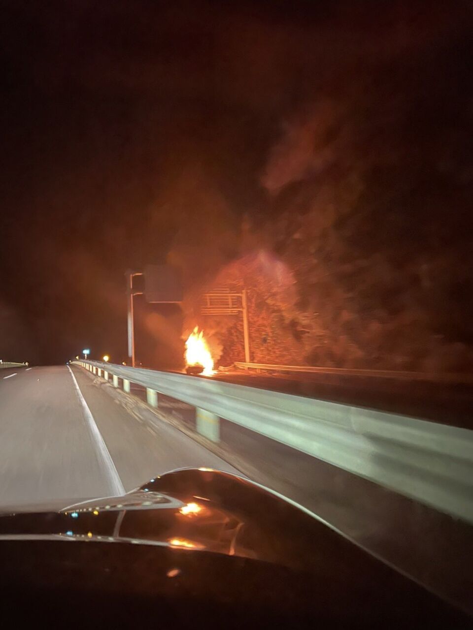 猿投名古屋方面料金所手前で燃えてるので気を付けて下さい-午後11:56 2022年3月27日-