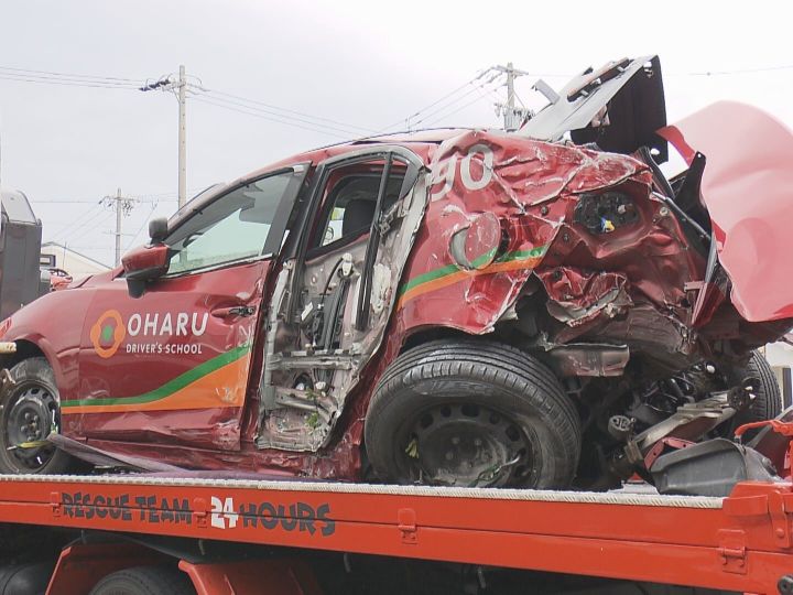 後部はほぼ原型とどめず…自動車学校の教習車とゴミ収集車が衝突 生徒の10代女性2人と50代教官1人ケガ