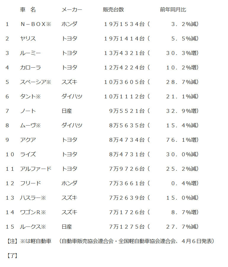 ※ヤリスはヤリスクロス等、カローラはツーリングやアクシオ等、ムーヴはキャンバス等、フリードはフリード+等、ワゴンRはスマイル等