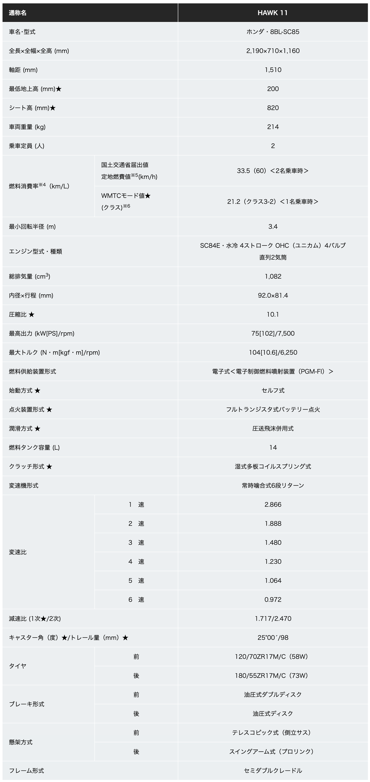 ホンダは、新型ロードスポーツモデル「HAWK 11」をHonda Dreamより9月29日(木)に発売すると発表した。
