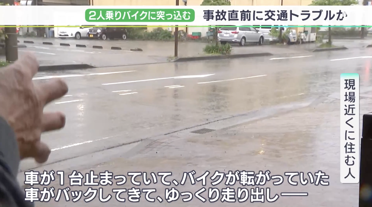<現場近くに住む人>「車が1台止まってて、バイクが転がってた。車がバックしてきて、ゆっくり走り出した。止まるかと思ったらそのまま走り去った」