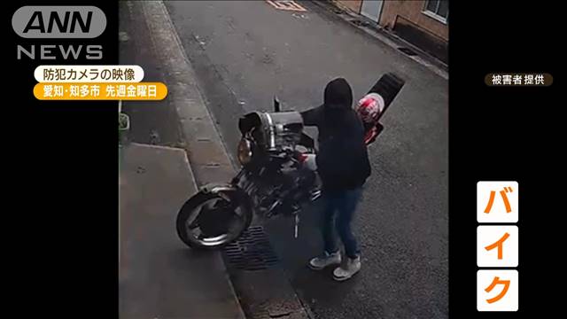 また、別の防犯カメラには同じ住宅のガレージから独特のフォルムのバイクが出て来る様子が、先ほどの黒いフードをかぶった男が周囲を見渡しながら、そのまま持ち去ったのです。