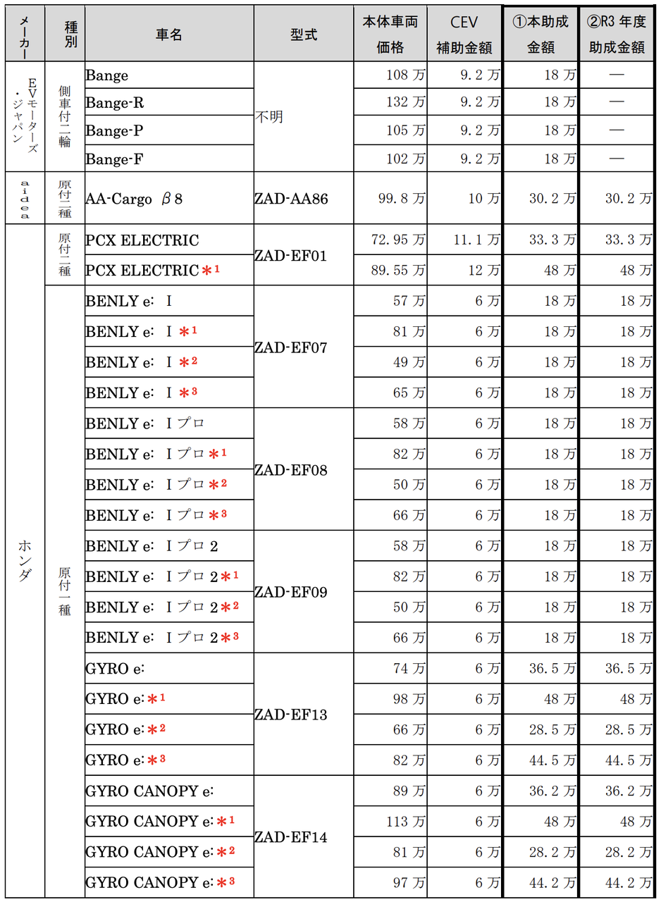 国の補助金交付対象になっている電動側車付二輪自動車・電動原動機付自転車
