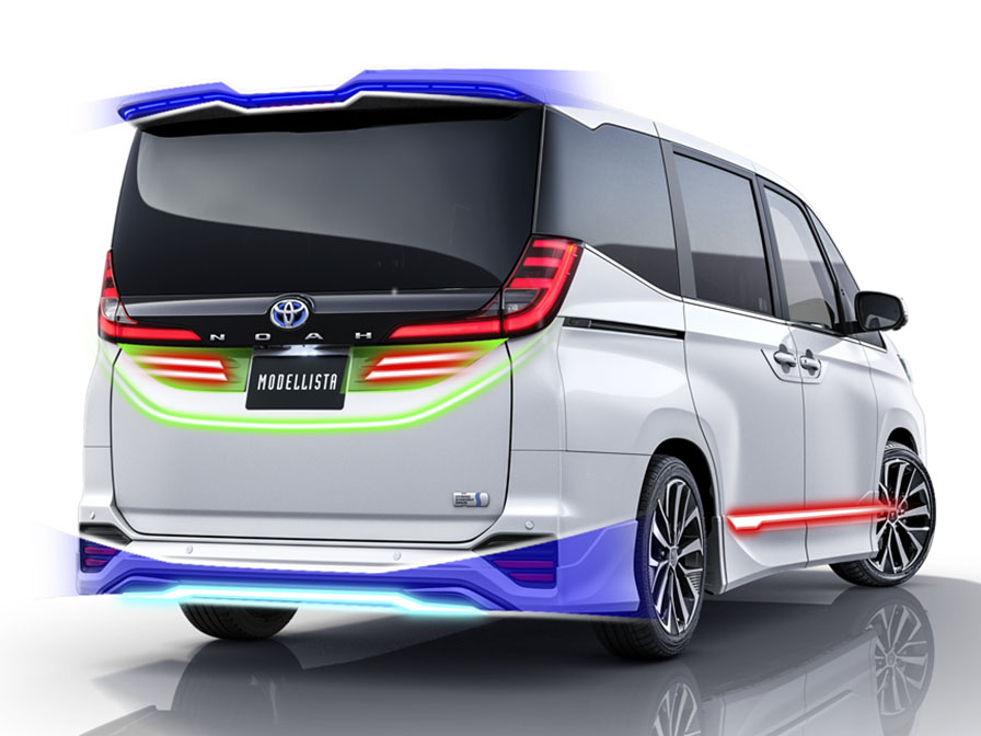 トヨタのメーカー系カスタマイズブランド「モデリスタ」さん。ノア、ヴォクシー向けにカーチューン御用達のオプションを用意wwなんとリアウイングが光るwww