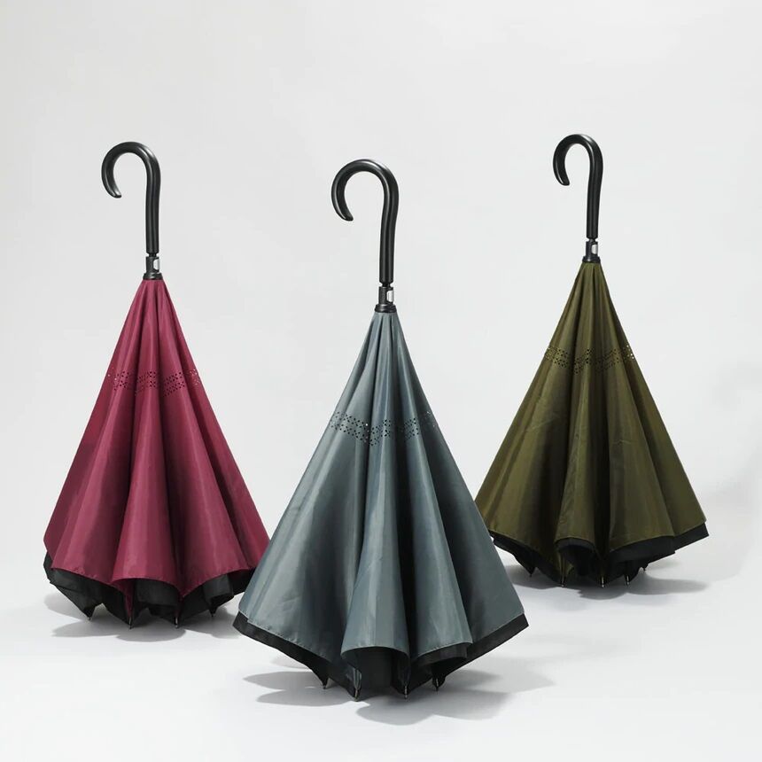 『Sa傘』はその名前の通り、普通の傘とは”逆さ”の向き(外側に向かって)に閉じます。濡れた面が内側に入るので、触れることで周りの人や自分自身を濡らしてしまう心配がありません。