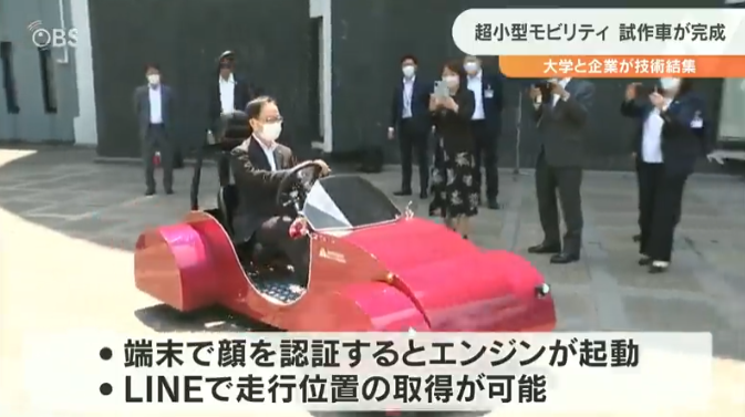 この車両は1人乗りの電気自動車で、長さ2メートル・幅が1メートルと小型化が図られています。端末で顔を認証するとエンジンが自動で起動するほか、LINE(ライン)で走行位置を取得できるのが特徴です。